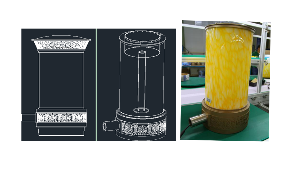 中照光源及玻璃燈筒組裝示意圖